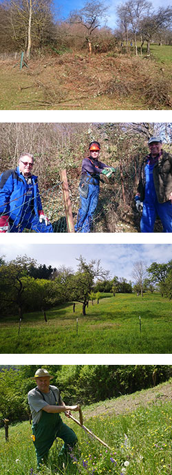 Mit teilweise großem Wohlwollen haben die angrenzenden Nachbarn die Aktivitäten beobachtet und unterstützt. Für das angenehme Miteinander ist die Familie Stütz sehr dankbar. Sie haben Ihr Flächen teils unentgeltlich zur Pflege oder als Pachtgrundstücke zur Verfügung gestellt. Von Familien, die den Pflegeaufwand nicht mehr leistbar oder lohnenswert angesehen haben, wurden Ihre Parzellen verkauft. So konnten in den letzten 10 Jahren, fortlaufend verschiedene angrenzende, auch steile Weideflächen und Streuobstwiesen dazugewonnen und die Fläche rund um den Kaiserberghof deutlich vergrößert werden. Diese mussten teilweise in mühevoller Handarbeit von dornigem Gebüsch befreit werden. Die verwilderten Flächen waren weder Wald noch Grünflache und boten keinen nennenswerten Mehrwert für Flora und Fauna. Durch das Pflanzen von Obstbäumen wurde auch der Streuobstwiesencharakter auf dem Kaiserberghof erhalten bzw. erweitert.