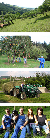 Die Wiesenfläche am Steilhang teilen sich die Hinterwälder-Rinder idyllisch mit dem Obstbaumbestand. Diese aus den „guten alten Zeiten“ bekannte Anbauweise macht den besonderen Reiz des Kaiserberghof´s aus. Tiere und Pflanzen bekommen Zeit, Respekt und Pflege um zu etwas besonderem werden zu können.Diese naturnahe Landwirtschaft bietet Lebensraum für eine große Zahl von Tierarten und Pflanzen welche gerade in der heutigen Zeit des Artensterbens immer wichtiger wird.